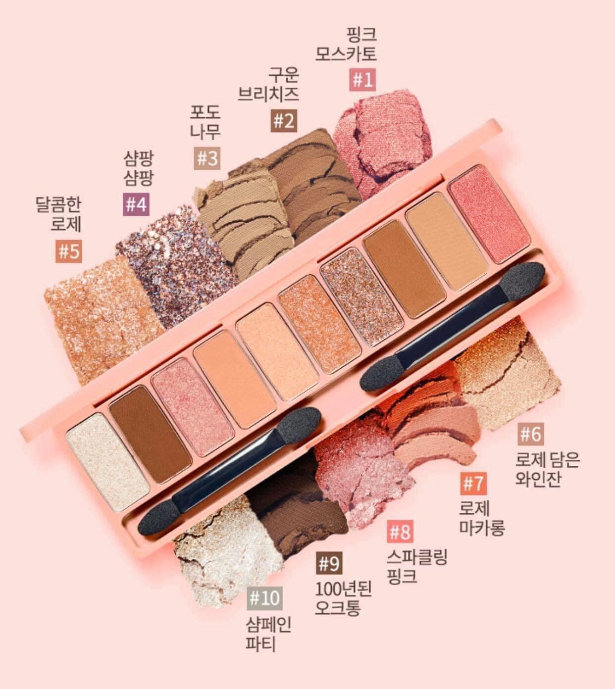 Bảng phấn 𝗘𝘁𝘂𝗱𝗲 𝗣𝗹𝗮𝘆 𝗖𝗼𝗹𝗼𝗿 𝗘𝘆𝗲𝘀 𝗥𝗼𝘀𝗲 𝗪𝗶𝗻𝗲 – Là bảng phấn mắt gồm 10 màu với tone màu rượu vang nhẹ nhàng, nữ tính và quyến rũ, lung linh, dễ dàng sử dụng. Lấy cảm hứng từ những màu sắc đầy mê hoặc của các loại rượu vang thượng hạng. Chất phấn cực mịn, dễ dàng tán đều trên mắt và lên màu siêu chuẩn. Bảng màu có cả matte, satin và nhũ phù hợp với mọi kiểu trang điểm, mọi hoàn cảnh