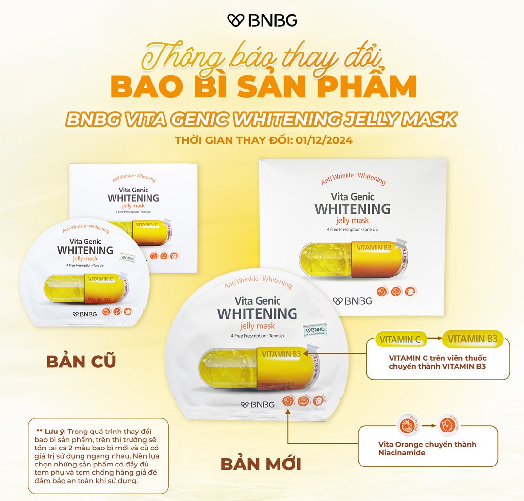 Nếu nói đến Hàn Quốc ta không thể không nhắc đến các loại mặt nạ làm sáng da thần thánh. Và Vita Genic BNBG Whitening Mask chính là một trong số đó. Vita Genic Whitening Mask bổ sung Vitamin A hàm lượng 20.000ppm được chiết xuất cây xương rồng tại đảo Jeju Hàn Quốc với công dụng làm sáng đặc biệt, mặt nạ sẽ hỗ trợ và làm giảm các sắc tố sậm màu dưới da, giúp da non phát triển sáng mịn tự nhiên. Vitamin C còn có tác dụng hỗ trợ tăng sức đề kháng, làm giảm các tình trạng mụn và tổn thương do các tác động thời tiết, nội tiết lên bề mặt da.
