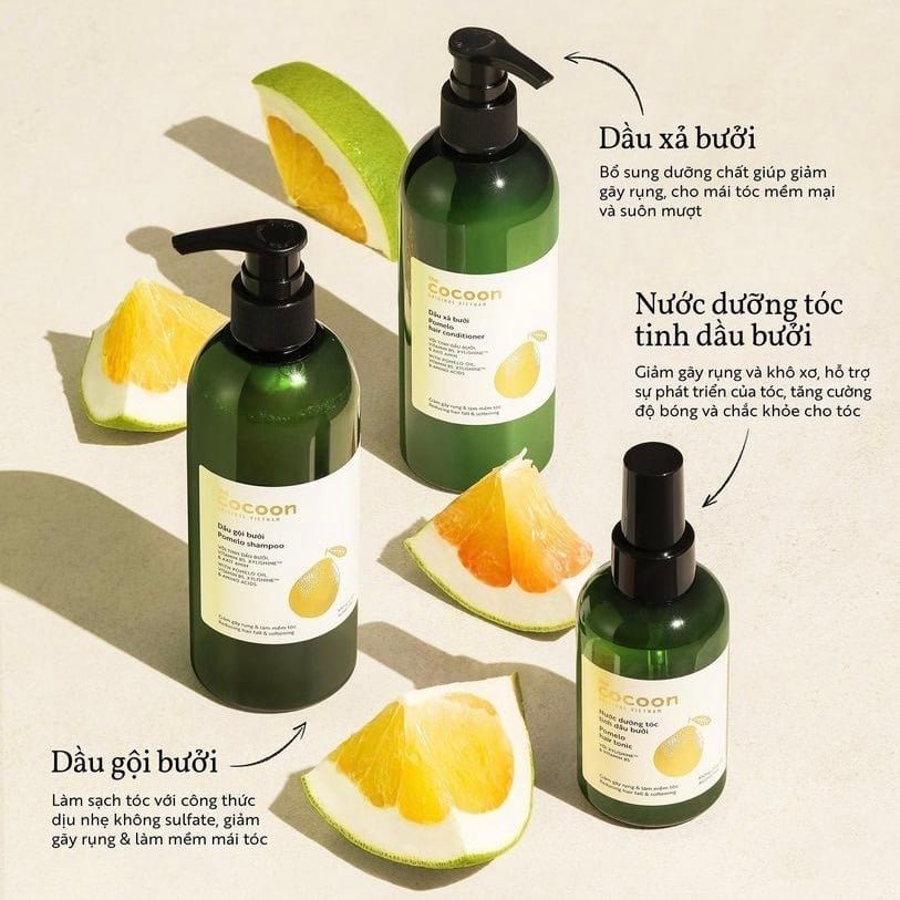 Dầu Gội Bưởi Cocoon Giảm Gãy Rụng & Kích Thích Mọc Tóc 310ml là dòng dầu gội đến từ thương hiệu mỹ phẩm Cocoon của Việt Nam, với thiết kế đặc biệt công thức dịu nhẹ không chứa sulfate thân thiện cho mái tóc và da đầu. Dầu gội với thành phần kết hợp từ tinh dầu vỏ bưởi Việt Nam truyền thống, Vitamin B5 và hoạt chất dưỡng ẩm Xylishine™ mang đến khả năng làm sạch tóc, giảm gãy rụng và kích thích sự phát triển của tóc.