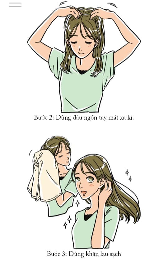 – Đặt vòi chai sát da đầu, bơm từng chút một sản phẩm lên da đầu, sau đó dùng các đầu ngón tay nhẹ nhàng massage khắp da đầu và tóc để sản phẩm thấm thấu và làm sạch hiệu quả.