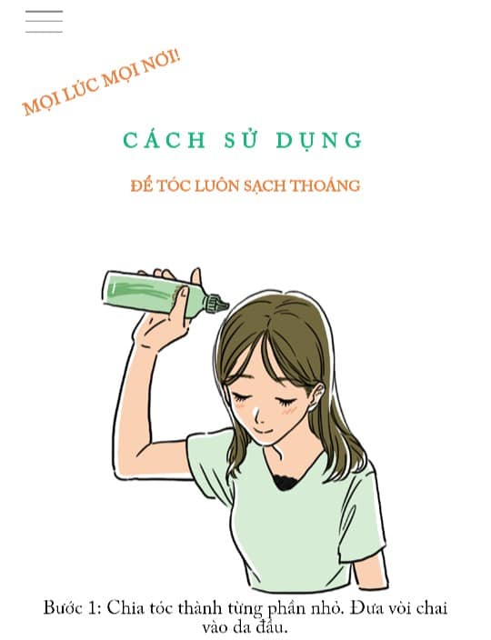 - Làm sạch tóc mà không cần nước, không cần sấy khô, dễ dàng sử dụng ở bất kỳ đâu (ở trường học, cơ quan, ngoài trời, đi du lịch…)