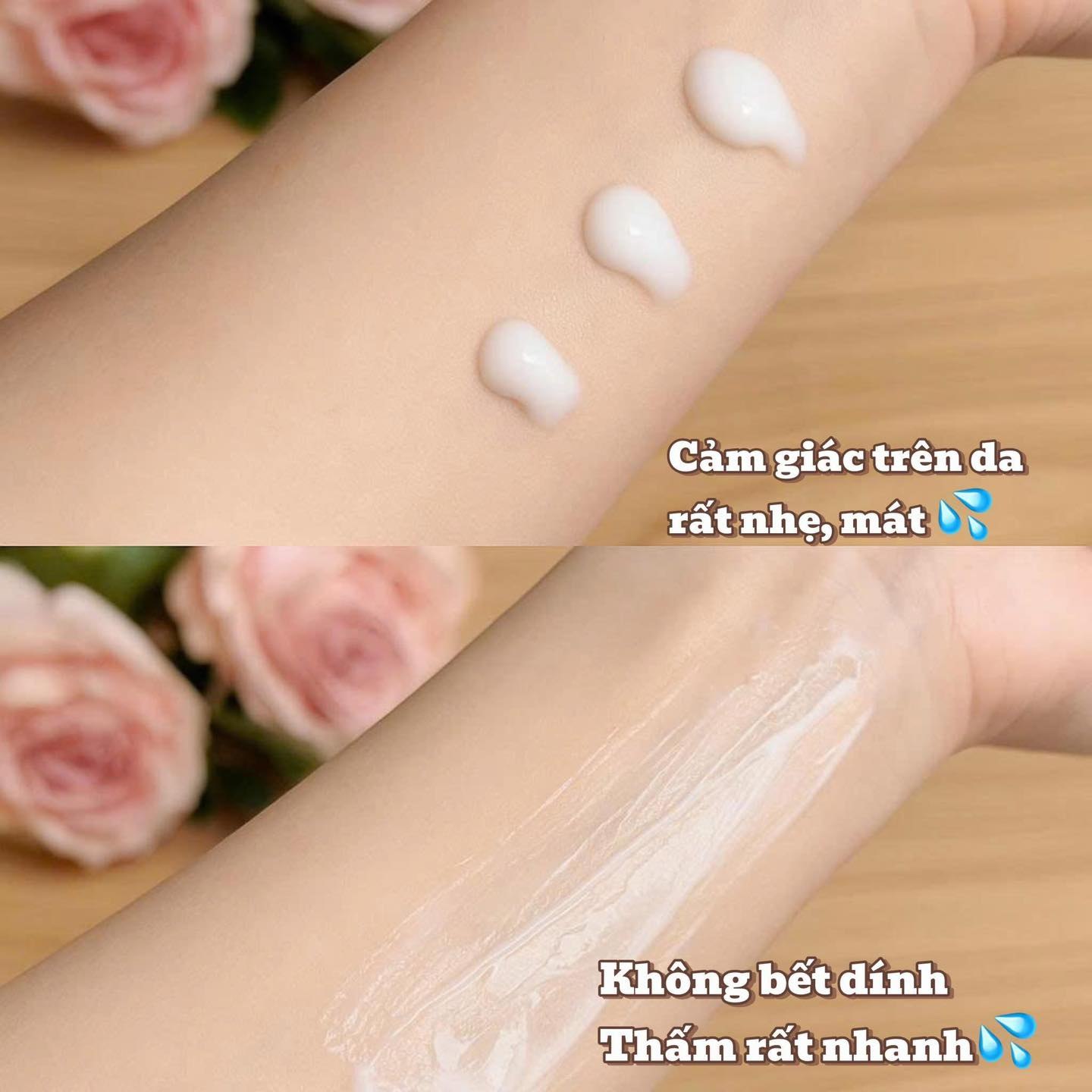 - Kết cấu dạng lotion mỏng nhẹ, thẩm thấu nhanh vào da ngay lập tức. Không bết rít