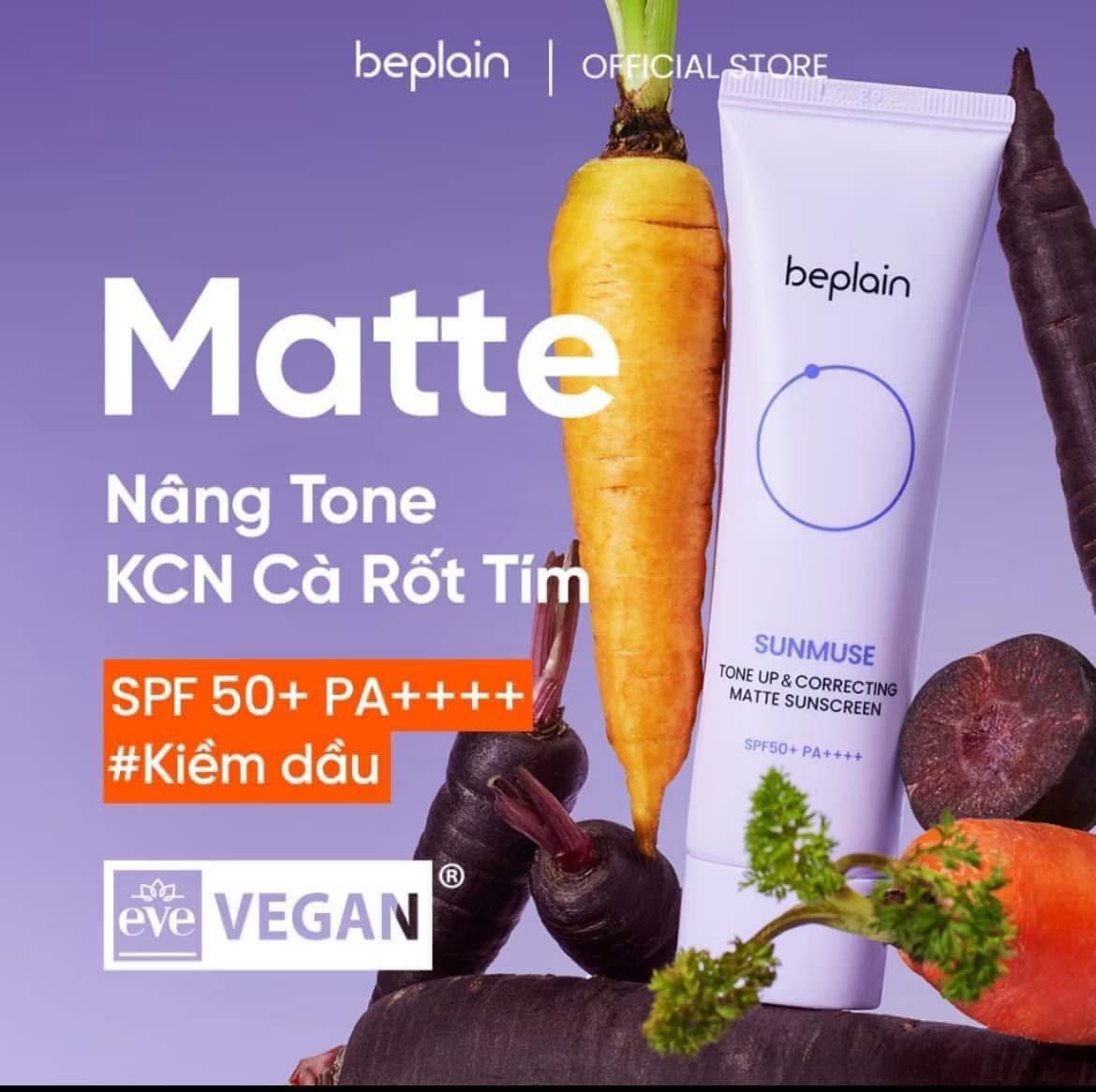 Kem Chống Nắng Beplain Sunmuse Tone Up & Correcting Matte Sunscreen SPF50+ PA++++ 50ml hiệu chỉnh tông màu, chống nắng đỉnh cao kiềm dầu vượt trội với công nghệ powder siêu mịn kiểm soát dầu thừa mà không gây bí da.