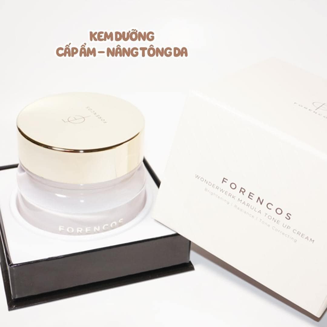Forencos đang là dòng kem dưỡng được yêu thích nhất ở Hàn Quốc, với gương mặt đại diện là diễn viên Song Joong Ki nổi tiếng. Forencos được nghiên cứu và điều chế trên quy trình hiện đại với công thức độc đáo giúp cải thiện làn da và khắc phục các dấu hiệu thâm sạm, không đều màu của làn da cùng các khuyết điểm thường gặp. Kem dưỡng Forencos Wonderwerk Marula Tone Up giúp cung cấp độ ẩm nhanh chóng và duy trì độ ẩm lâu dài cho da, xoa dịu cho làn da nhạy cảm. Bên cạnh đó kem dưỡng còn có công dụng cải thiện nếp nhăn và làm chậm quá trình lão hóa cho làn da luôn tươi trẻ.