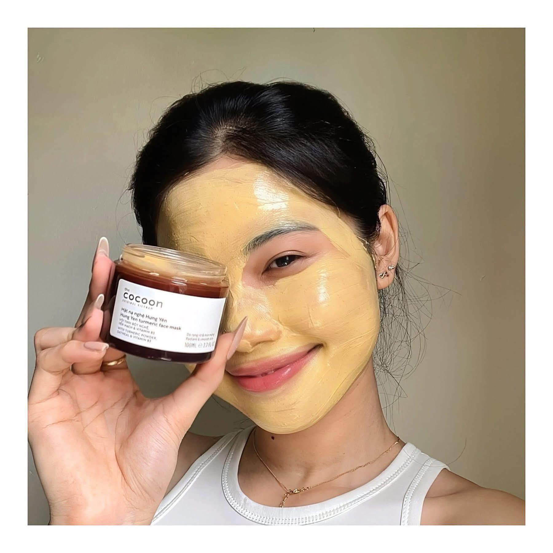 Mặt Nạ Cocoon Chiết Xuất Từ Nghệ Hưng Yên 30ml là dòng mặt nạ đến từ thương hiệu mỹ phẩm thuần chay Cocoon của Việt Nam, với thành phần chính tinh bột nghệ từ củ nghệ ở vùng đất Hưng Yên giàu curcuminoid kết hợp cùng chiết xuất yến mạch, hạt óc chó và vitamin B3 cung cấp dưỡng chất giúp cải thiện bề mặt da sần sùi, thô ráp, lấy đi các tế bào chết nhẹ nhàng mang lại làn da sáng mịn, đều màu, ẩm mượt, rạng ngời.