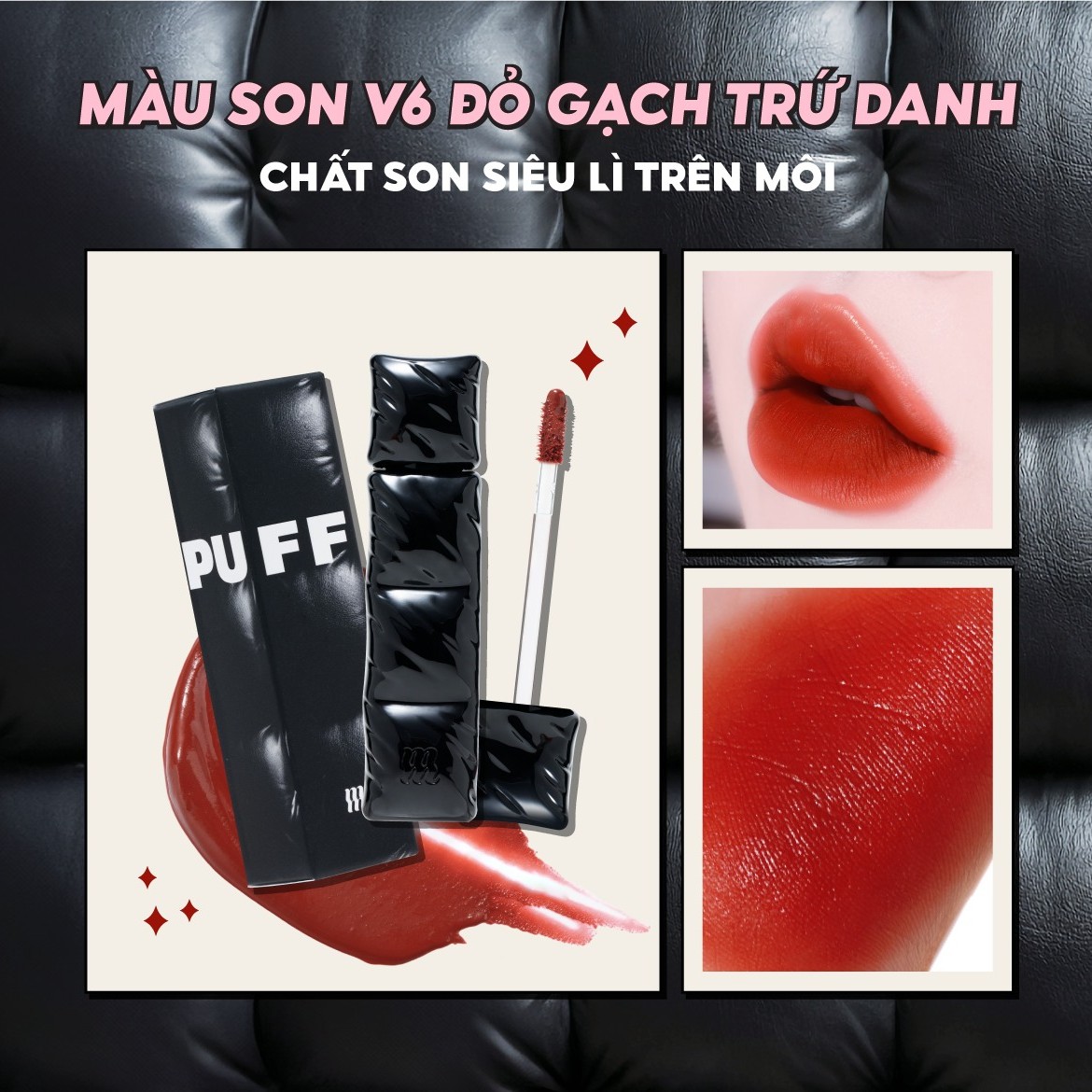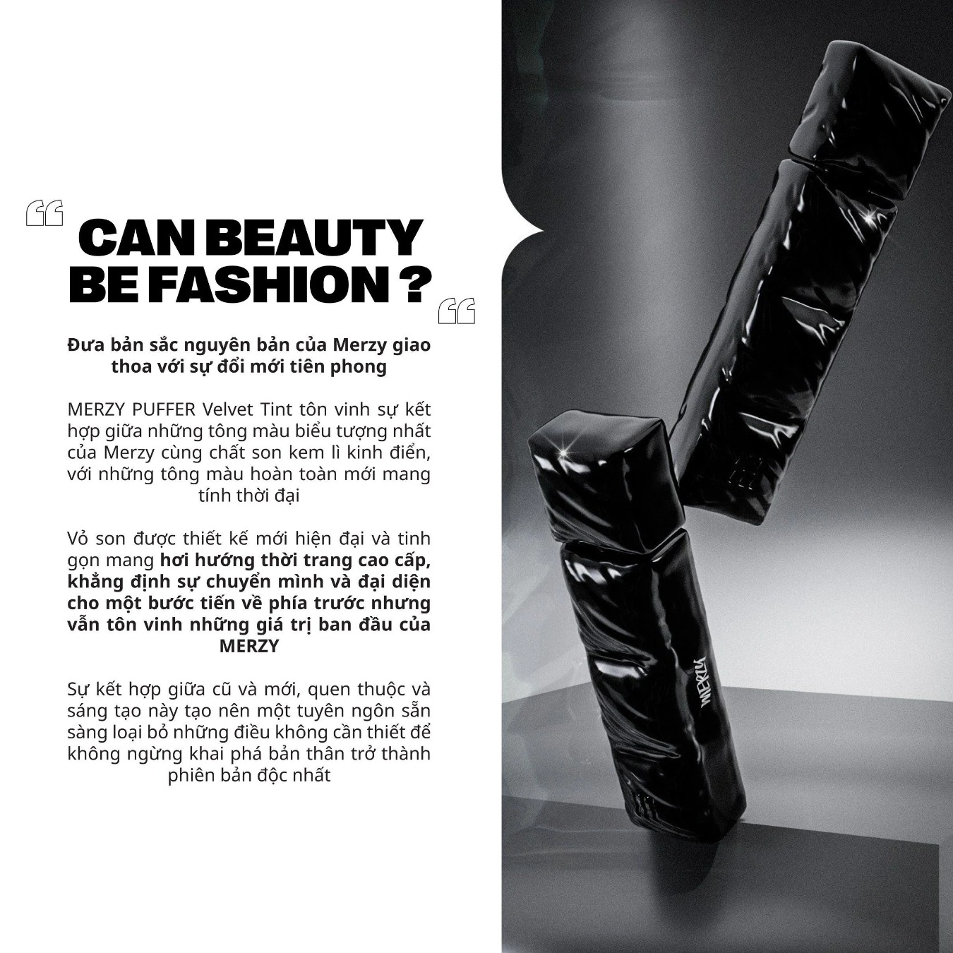 Son Kem Lì, Bền Màu Merzy Puffer Velvet Tint là son kem lì đến từ thương hiệu Merzy. Sản phẩm là sự kết hợp giữa tông màu biểu tưởng nhất của Merzy cùng chất son kem lì kinh điển, với những tông màu hoàn toàn mới. Nổi bật với vỏ son được thiết kế hiện đại, tinh gọn mang hơi hướng thời trang cao cấp, thể hiện sự đột phá, nổi bật cá tính nguyên bản cùng sự chuyển mình đầy mới lạ. Đồng thời chất son kem lì với độ bền màu cao, bổ sung độ ẩm cho đôi môi mịn mướt, tự tin cả ngày dài.