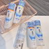 - Chai màu xanh dương sọc đỏ: Dưỡng ẩm + dưỡng trắng da cho da khô