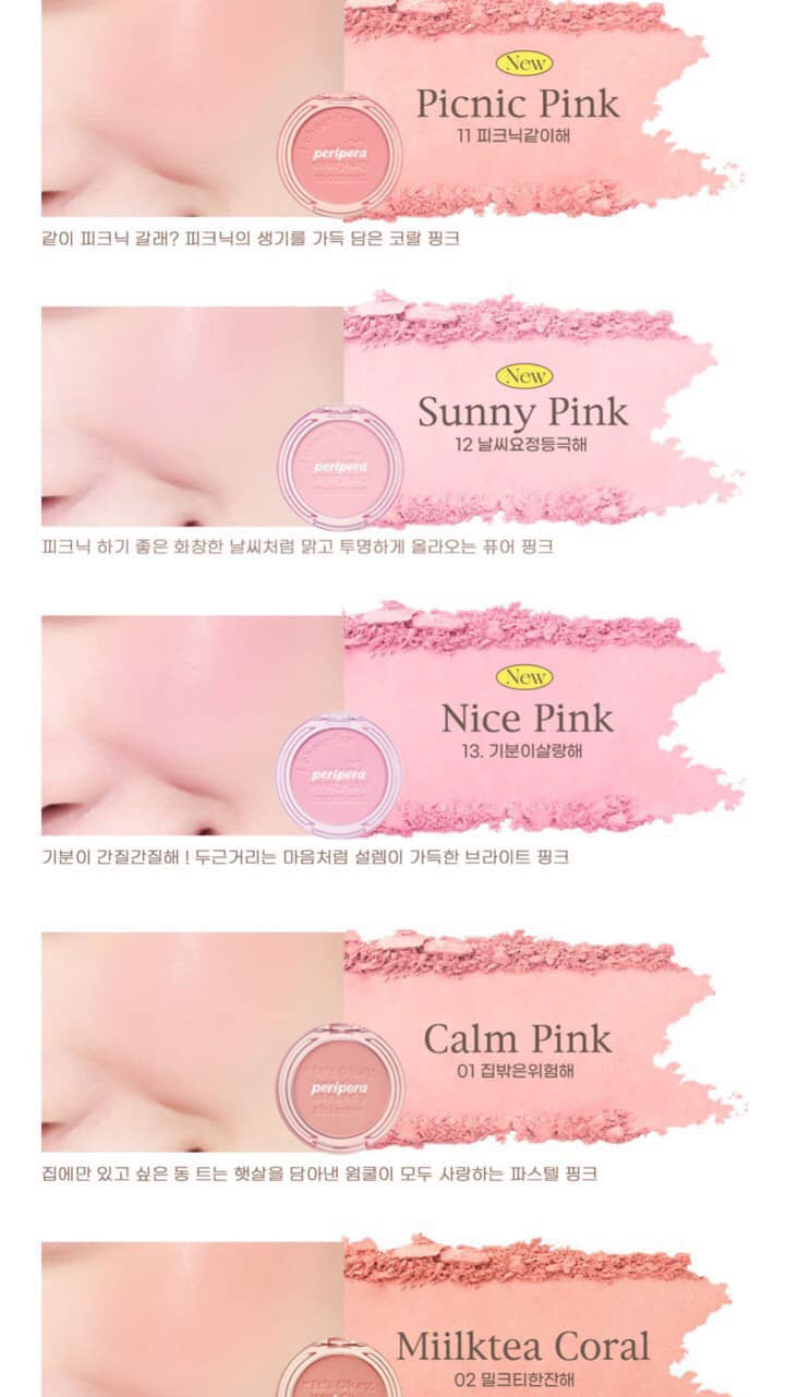 – Má hồng Peripera với kết cấu phấn mịn và giữ màu lâu trôi, sắc màu nhẹ nhàng cùng khả năng dưỡng ẩm bên trong cho làn da.