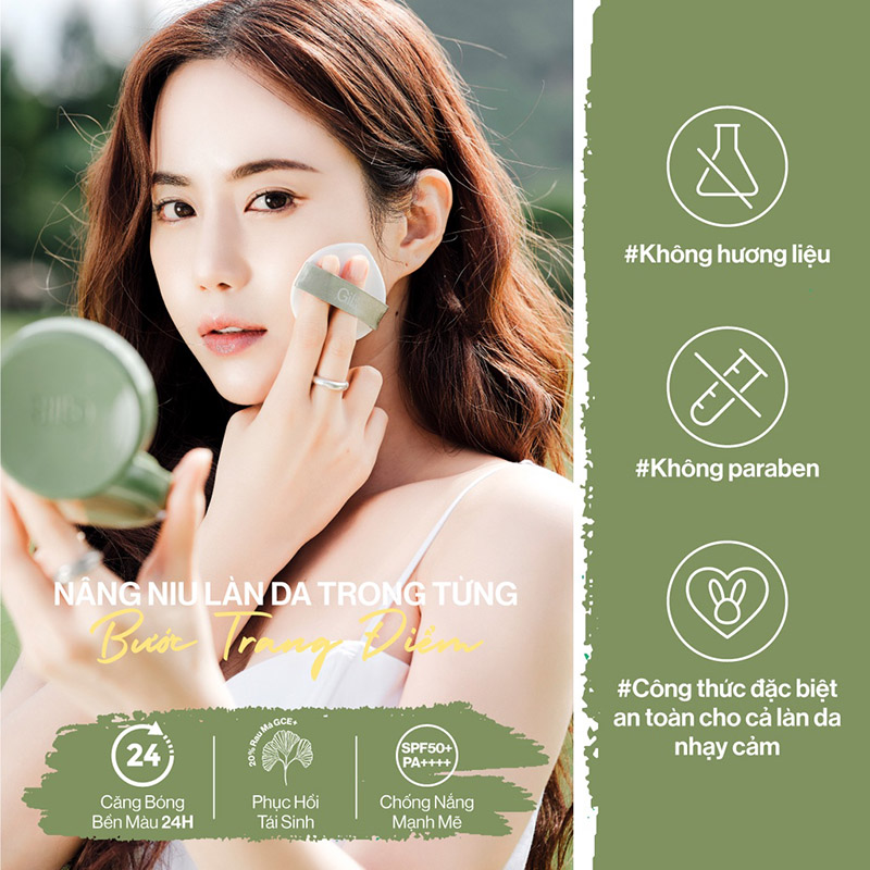 Phấn Nước Gilaa Căng Bóng 15g là sản phẩm cushion đến từ thương hiệu mỹ phẩm Gilaa của Hàn Quốc, cải tiến với hạt phấn làm căng bóng 24Glow Powder, cố định nền 24H kết hợp chăm sóc tái sinh làn da với 20% Rau Má GCE+ và chống nắng SPF50+/PA++++. Đem đến giải pháp trang điểm thế hệ mới, lành tính và an toàn dành cho các làn da nhạy cảm, da mụn. Đạt chứng nhận thuần chay V-Label Châu Âu và hoàn thành kiểm nghiệm da liễu (Dermatologist Tested) không gây kích ứng, dịu nhẹ cho làn da. Đặc biệt không chứa nguyên liệu có nguồn gốc động vật.