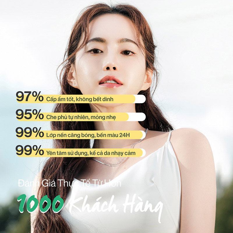 - Apply lên mặt và tán đều đến khi được lớp nền như mong muốn.
