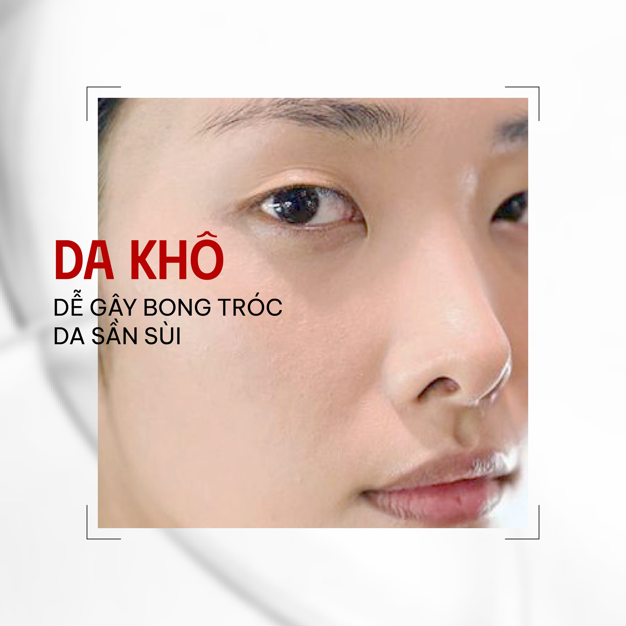 - Da khô, sần sùi, tích tụ nhiều tế bào chết.
