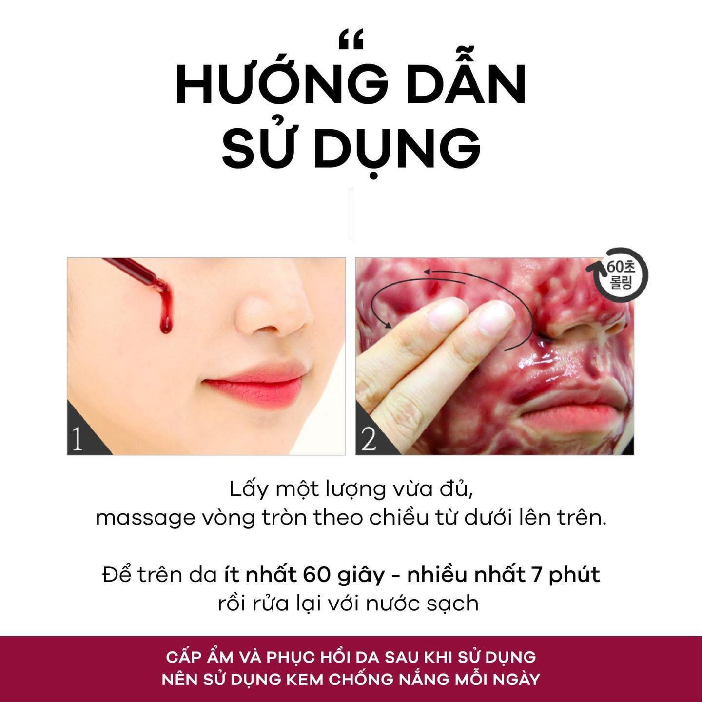 - Để trên da từ 60 giây – đến 10 phút. Tùy vào từng loại da sẽ có thời gian để trên da khác nhau.