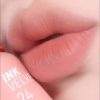 Tiến hành thoa son kem lì Peripera vào lòng môi và dùng tay, cọ hoặc bặm môi để son được tán đều trên môi.