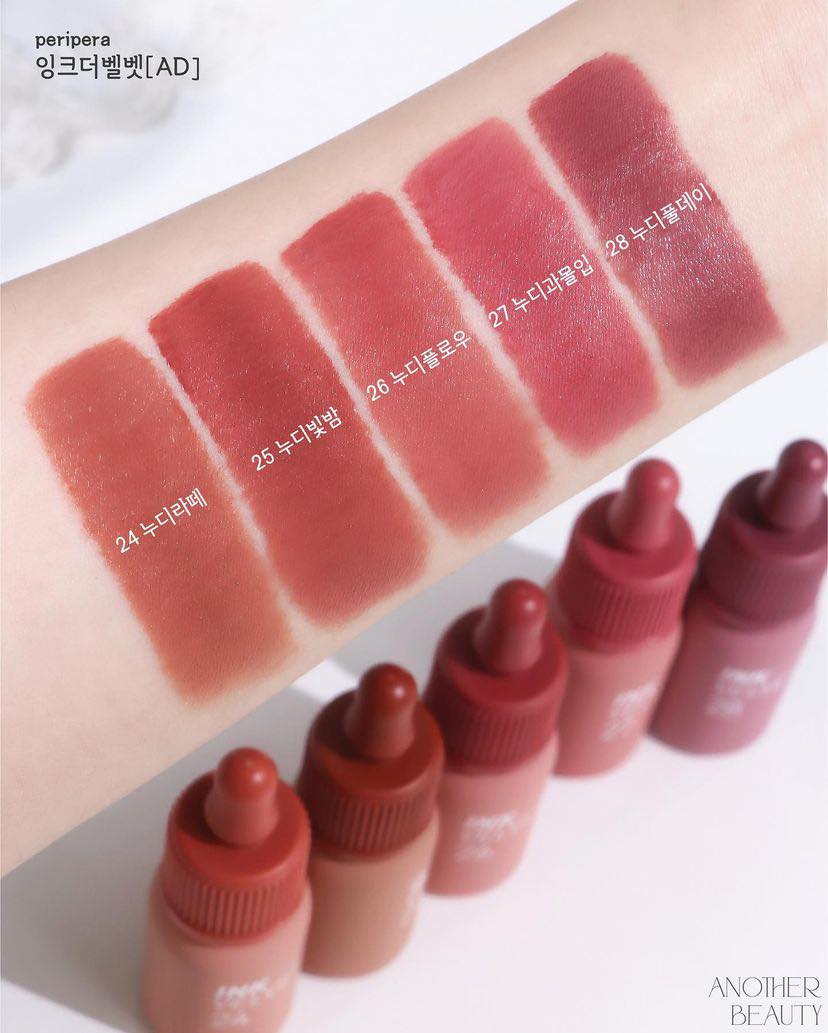 Son Kem Lì Peripera Ink Velvet Nude sở hữu các màu sắc thời thượng, phù hợp với từng sở thích và nhiều tông da khác nhau. Bảng màu son kem lì này bao gồm các màu sắc như: