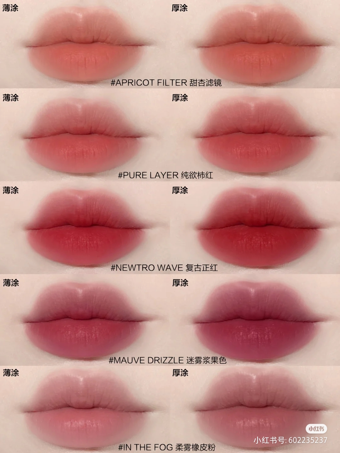 – Hiệu ứng “Breathing Matte” làm mờ những nếp rãnh môi, cho bề mặt môi phẳng như lớp thảm nhung, finish lì mờ mịn màng nhưng không làm môi bị khô căng, ngược lại trông môi đầy đặn và ráo mướt