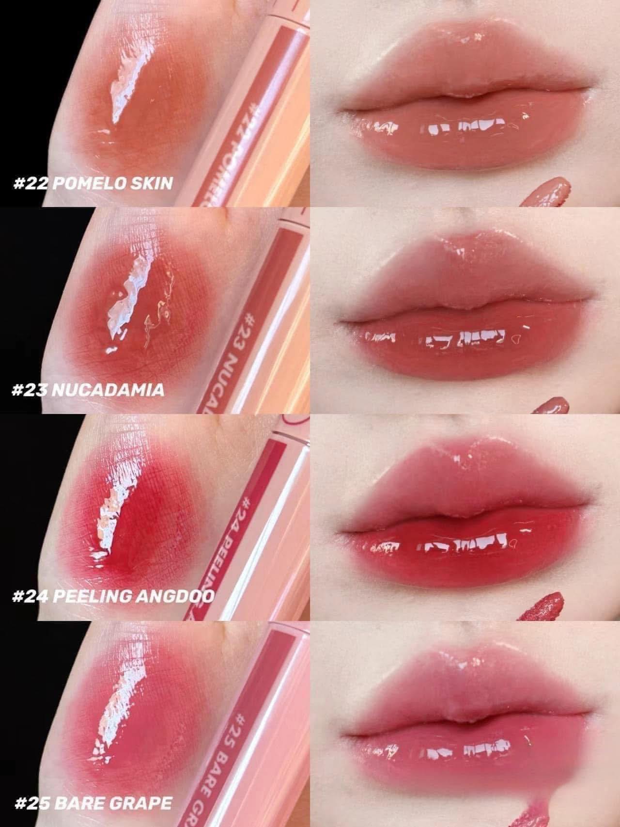- Kết cấu son dạng tint bóng khi lướt trên môi mang cảm giác tươi mát, không bị dính môi rất dễ chịu