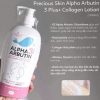 Sữa Dưỡng Trắng Body Alpha Arbutin Collagen Lotion chứa các hoạt chất Alpha Arbutin và Glutathione là hoạt chất dưỡng trắng hiệu quả và an toàn thông qua cơ chế ức chế quá trình chuyển hoá Tyrosine thành Melanocyte – các hắc sắc tố khiến cho làn da bị sạm, nám, đồi mồi.
