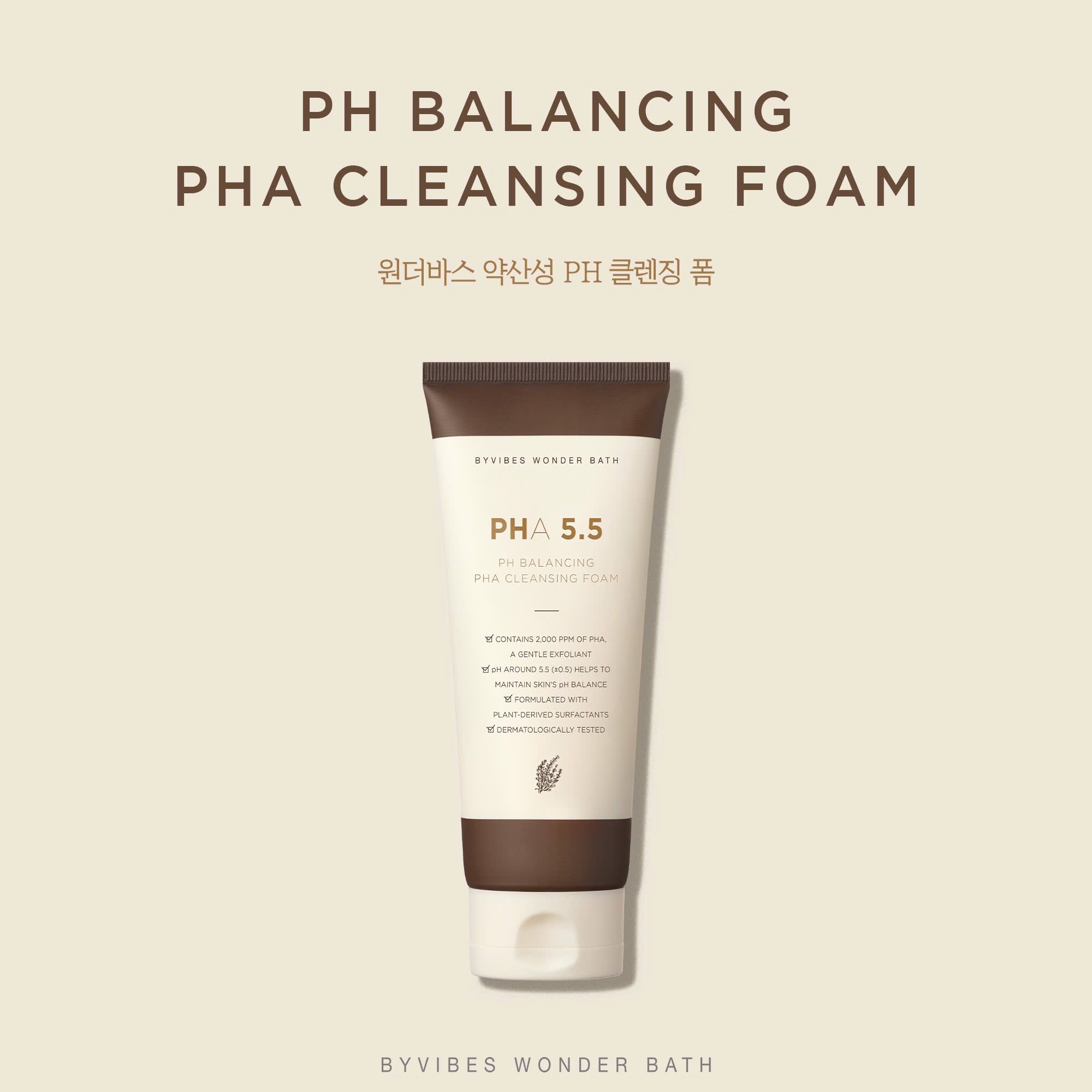 Sữa Rửa Mặt Tẩy Tế Bào Chết Byvibes Wonder Bath PHA 5.5 PH Balancing PHA Cleansing Foam là dòng sữa rửa mặt tạo bọt có độ PH 5.5 – độ pH tốt nhất cho da, đồng thời thành phần PHA giúp làm sạch da và hỗ trợ điều trị mụn. Các thành phần trong sữa rửa mặt đến từ tự nhiên nên dịu nhẹ cho da và giữ ẩm cho da hiệu quả.