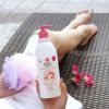 – Lấy một lượng sữa vừa đủ cho vào bông tắm tạo bọt và xoa đều khắp toàn thân từ 2 đến 5 phút