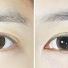 - Tương tự như cách xác định điểm A, bạn hãy đặt chì kẻ đi qua cánh mũi và đuôi mắt, giao điểm của bút chì và chân mày là điểm đuôi (điểm B).