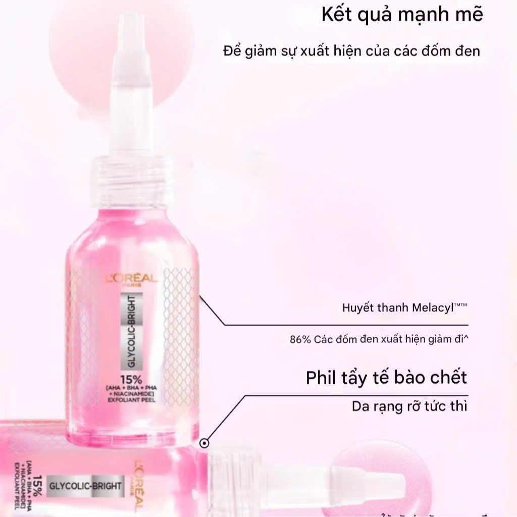 Với hơn 38 năm nghiên cứu chuyên sâu về da, L’Oréal Paris luôn thấu hiểu những trăn trở của người dùng về hành trình chăm sóc làn da sáng, khoẻ, mờ đốm nâu và cải thiện lỗ chân lông to. Chính vì vậy, 𝐓𝐢𝐧𝐡 𝐜𝐡𝐚̂́𝐭 𝐩𝐞𝐞𝐥 𝐡𝐨̂̀𝐧𝐠 𝐬𝐚́𝐧𝐠 𝐝𝐚 𝐆𝐥𝐲𝐜𝐨𝐥𝐢𝐜 𝐁𝐫𝐢𝐠𝐡𝐭 𝐀𝐧𝐭𝐢-𝐃𝐚𝐫𝐤 𝐒𝐩𝐨𝐭 𝐄𝐱𝐟𝐨𝐥𝐢𝐚𝐧𝐭 𝐏𝐞𝐞𝐥 được trình làng chính là cột mốc quan trọng đánh dấu bước tiến mới trong hành trình chăm sóc da khoa học tại nhà cùng L’Oréal Paris.